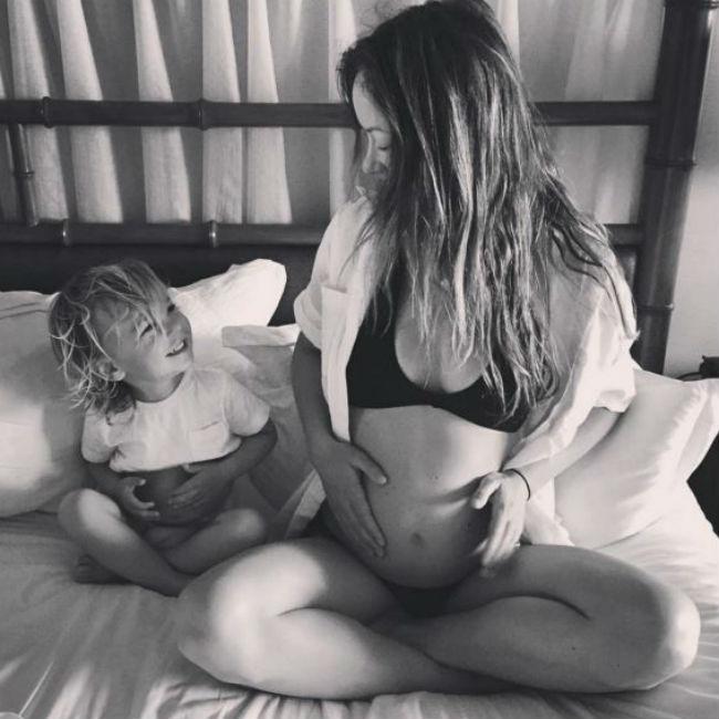The 32-year-old actress posted a picture of herself and the couple’s son Otis – who will turn two this week – on her Instagram page showing off their tummies and captioned it: "Matching baby bumps."