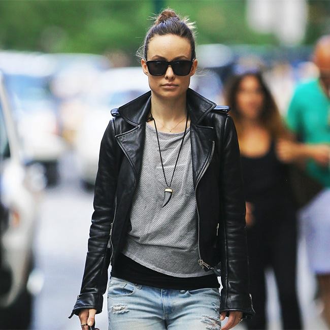 Olivia Wilde sported a black leather jacket and jeans as she met up with a group of friends to watch the 2014 FIFA World Cup in New York.