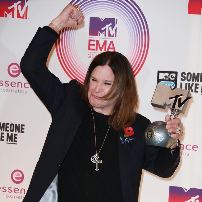 Ozzy Osbourne looked ecstatic as he waved his Global Icon Award around following his win at the MTV EMAs. The 65-year-old musician was honoured at the ceremony with a musical tribute by Slash and Biffy Clyro’s Simon Neil.