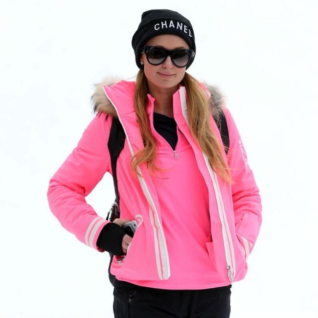 Paris Hilton proved you can still be fashionable even on the slopes, showing off a Chanel beanie hat while skiing in Aspen, Colorado. Posing in her thermal gear, the socialite boasted the snuggly hat and eye-catching pink coat before returning to her snowy downward dash.