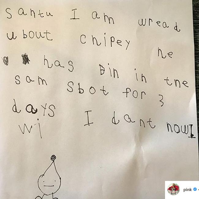 The ‘So What?’ hitmaker – who also has 11-month-old son Jameson with her husband Carey Hart – has shared a photograph of the letter her oldest child wrote on her Instagram account.