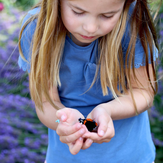 Catherine, 39, took the adorable snap of her six-year-old daughter studying the beautiful wings of the Red Admiral while taking part in the Big Butterfly Count in Norfolk.