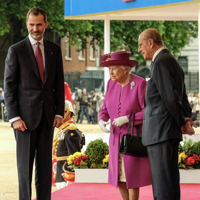 The 91-year-old monarch and Prince Philip held the event at Buckingham Palace to welcome Spain’s King Felipe VI and Queen Letizia to London, and the queen called for the two countries to stick together "whatever challenges arise" in the future.