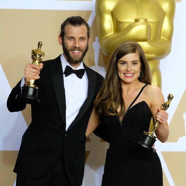 The couple won the Best Live Action Short Film at the Academy Awards on Sunday night (04.03.18) for their movie ‘The Silent Child’ – which she wrote and starred in, and he directed – and they toasted their success by gorging on fast food, and event spilt some on their prestigious award.