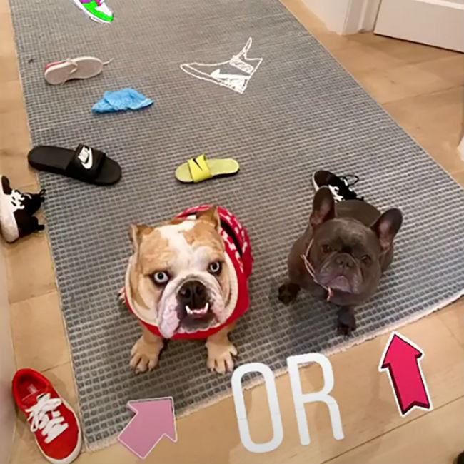 She then posted a video on her Instagram Story of herself questioning the pair, saying: "Which one of you guys ate all the shoes? Pepper, was it you? Lou did you eat all the shoes?"