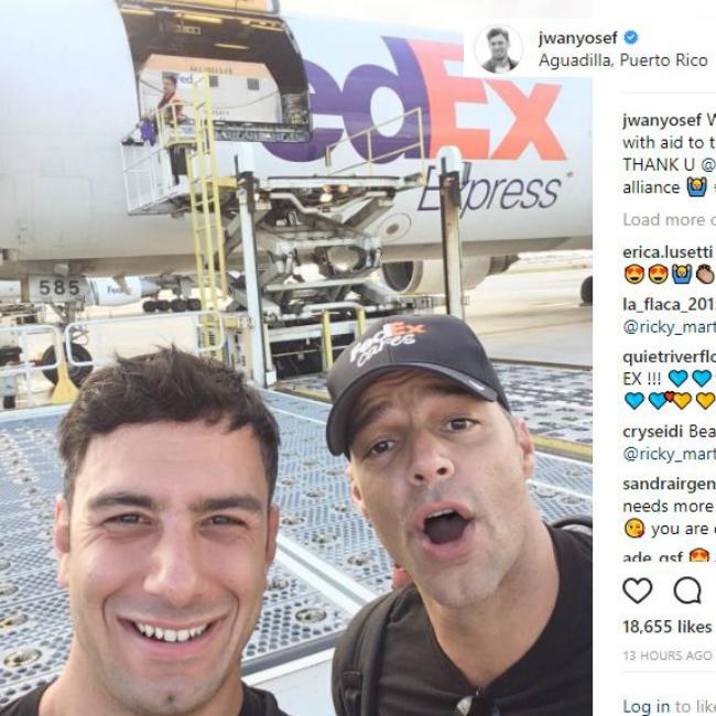 Jwan posted a selfie of the pair in front of the plane and added the caption: "We flew this @fedex cargo plane with aid to the western part of Puerto Rico THANK U @fedex for joining us in this alliance #hurricanemaria #puertorico (sic)"