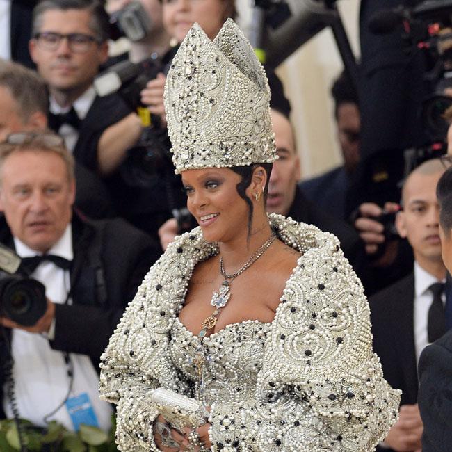 The Bajan beauty – who co-chaired the fashion event with Vogue’s Anna Wintour, Amal Clooney and Donatella Versace – was dressed head-to-toe in pearls and crystals in her Maison Margiela gown, complete with a matching underskirt and clutch bag.