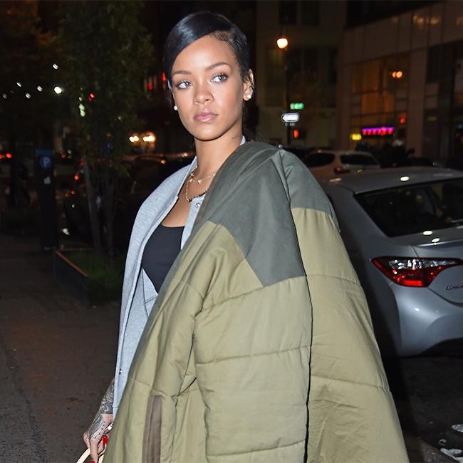 Rihanna hides in big coat