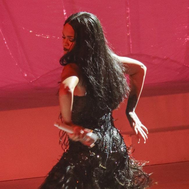 Rihanna gave it her all flicking her dress in the air and showing off her dance skills at her concert in Seattle on Sunday (24.04.16).