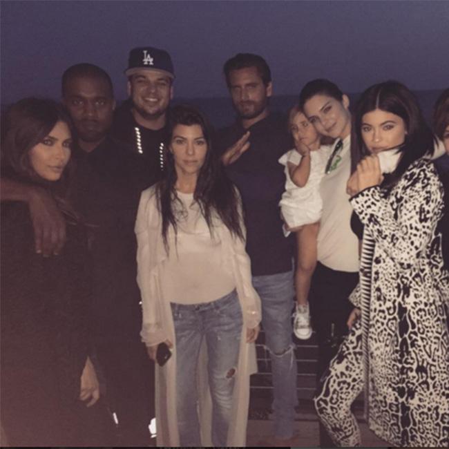 The sock-selling entrepreneur – who turned 29 on Thursday (17.03.16) – posed for a rare family portrait with Kim Kardashian West, her husband Kanye, Kourtney Kardashian and her estranged partner Scott Disick, his half-sister Kylie and Kendall Jenner and mother Kris Jenner.