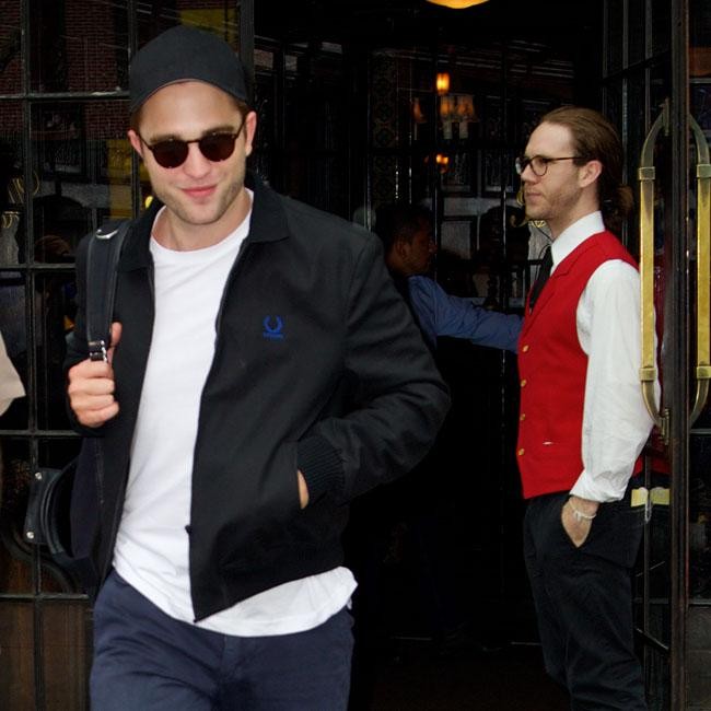 Robert Pattinson flashes a rare smile as he leaves The Bowry Hotel in New York wearing his usual casual clothing with trainers, a baseball cap and shades.