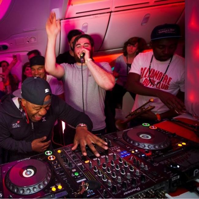 DJ Locksmith urged the lucky passengers onto the makeshift dancefloor during the #FlightDecks event, shouting at them: "This flight right here is going to be the best party of your life!"