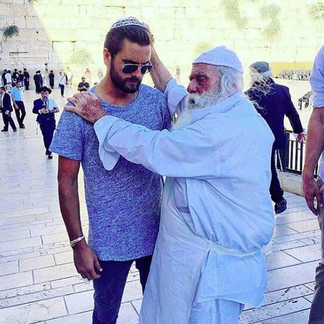 In one picture, taken at Jerusalem’s Western Wall, Scott, wearing a Kippah – a traditional Jewish brimless hat – is standing as a rabbi lays his hands on the reality star’s shoulder and head.
