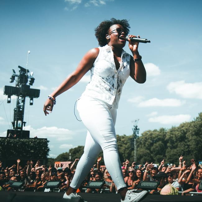 The songstress brought her fire to the sun-kissed crowd and pulled out all the stops jumping around the stage.