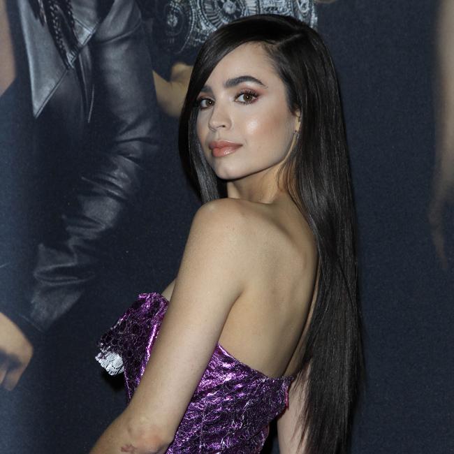 Sofia Carson looked like a piece of the Christmas tree in a purple metallic strapless gown at the ‘Pitch Perfect 3’ premiere.