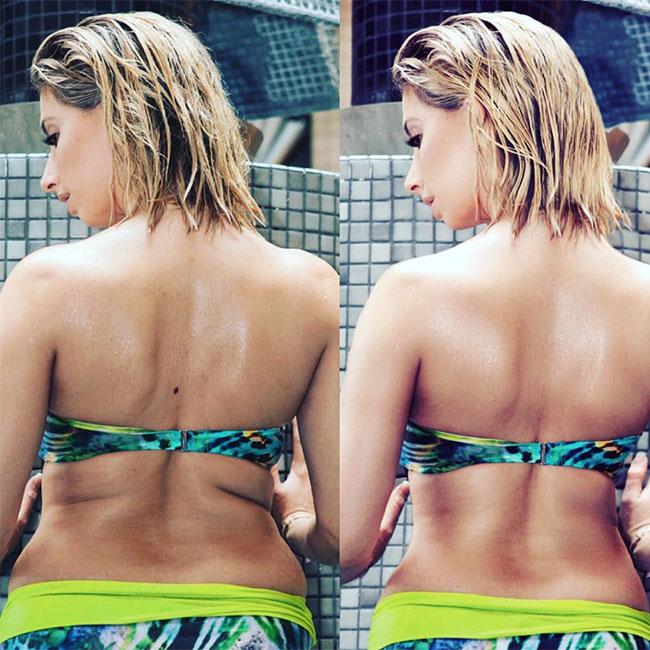 The 28-year-old star has allowed a non-edited and edited photograph of her in a bikini to be published side by side in a bid to raise awareness of how airbrushing creates a false reality.