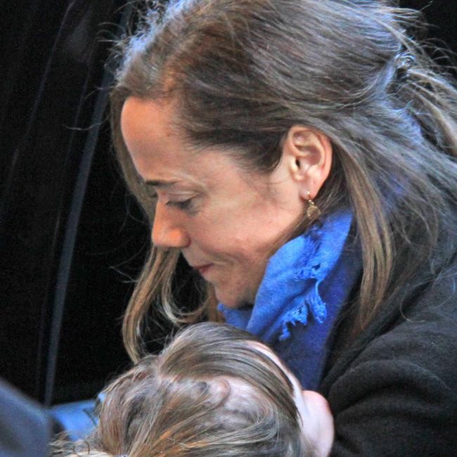 Mimi, Philip’s partner of on/off 14 years, was visibly upset as she made her way inside the funeral home holding her sleeping daughter, Willa.