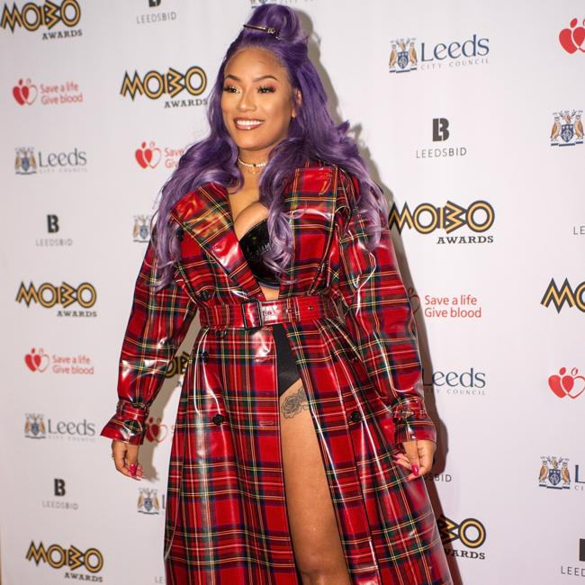 The rapper – whose real name is Stephanie Allen – pulled out all the stops at this year’s music extravaganza as she sported a skimpy black bralette and briefs, which she paired with a red tartan coat that she layered on top.