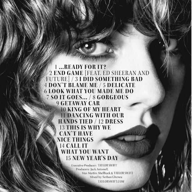 Taylor Swift has revealed the track listing for ‘Reputation’.