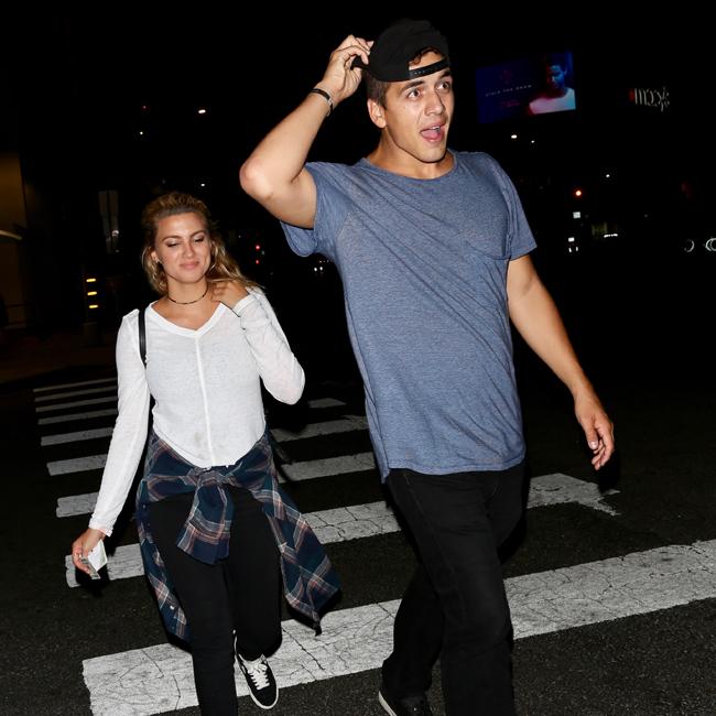 The 24-year-old singer was at the celebrity hotspot the same night as Justin Bieber and was seen walking across a crossing Beatles style with the extremely tall hunk who sported a backwards snapback hat and casual jeans and t-shirt.