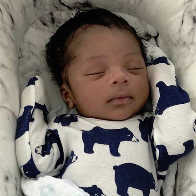 He captioned a photo of the tot fast asleep in a bassinet wearing a bear-covered onesie: "My son Noah. We are blessed and overjoyed. Peace."