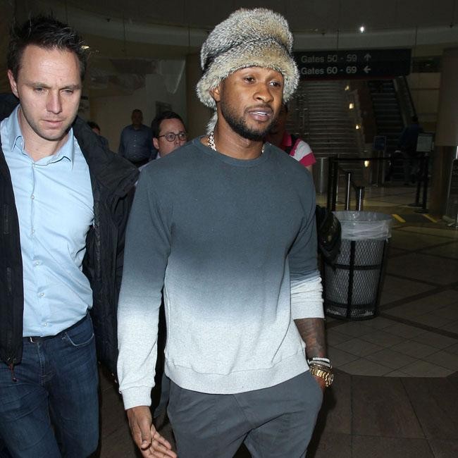 Usher arrived at LAX airport in Los Angeles wearing an interesting furry hat. The ‘Climax’ singer opted for a tie dye t-shirt with black trousers.