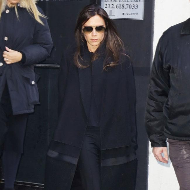 Victoria Beckham looked chic wearing an oversized black coat during New York Fashion Week. The former spice girl kept her look smart with a black shirt and tailored trousers.