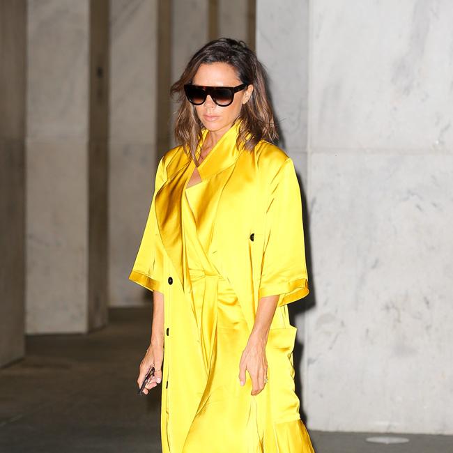 But backstage at her New York Fashion Week show earlier this month, Victoria was pictured in a simple shirt, slouchy linen trousers and comfortable sandals, a far cry from her usual polished look.