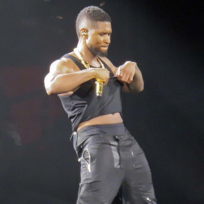Never shy to flash a bit of flesh, Usher was at it again in downtown Toronto, where he performed some of his biggest hits in front of a packed crowd. The 36-year-old star wore a tank top that helped to show off his muscular physique.