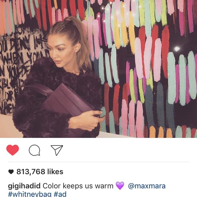 The 21-year-old captioned the post: "Color keeps us warm @maxmara #whitneybag #ad (sic)."