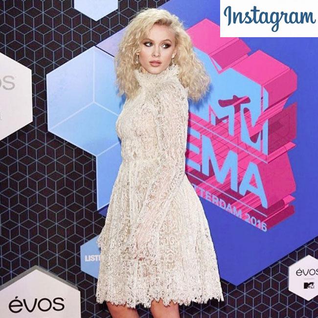 Zara Larsson looked like a snow queen in white netted gown at the MTV European Music Awards.