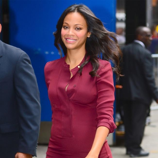 Zoe Saldana shows off growing baby bump